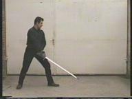 Vor dem Hieb wird die lange Schneide nach vorne gewendet.