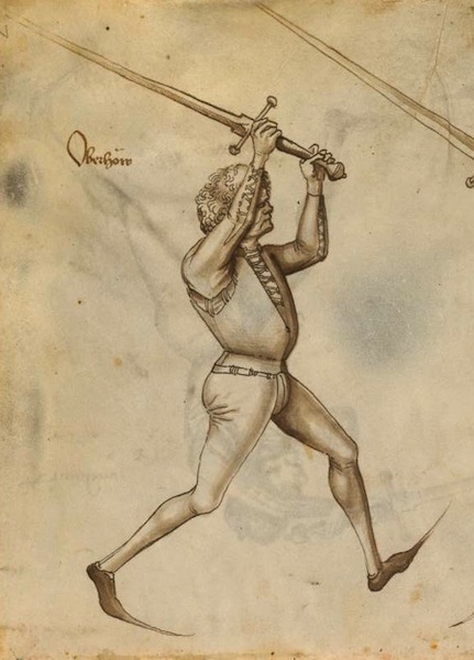 "stand mit linken fuoß vor, vnd halt din schwert (...) vßgerechten armen vber din haup"